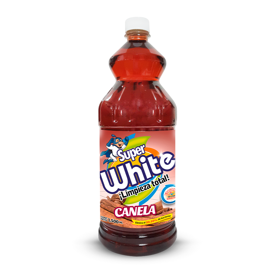 El desinfectante de Canela Super White limpia, desinfecta y aromatiza con un agradable olor a canela. Elimina el 99.9% de virus, bacterias y hongos en superficies como pisos, baños, cocinas y muebles. Se puede usar diluido en agua para limpieza general o puro en zonas de alto contacto. Ideal para mantener espacios frescos y protegidos. No mezclar con otros productos. Se recomienda usar guantes y ventilar el área durante su aplicación.