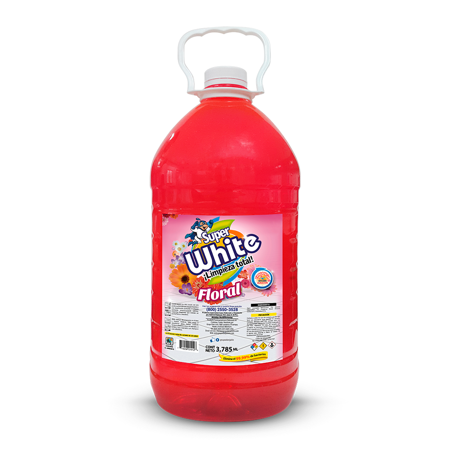 El desinfectante de Canela Super White limpia, desinfecta y aromatiza con un agradable olor a Floral. Elimina el 99.9% de virus, bacterias y hongos en superficies como pisos, baños, cocinas y muebles. Se puede usar diluido en agua para limpieza general o puro en zonas de alto contacto. Ideal para mantener espacios frescos y protegidos. No mezclar con otros productos. Se recomienda usar guantes y ventilar el área durante su aplicación.